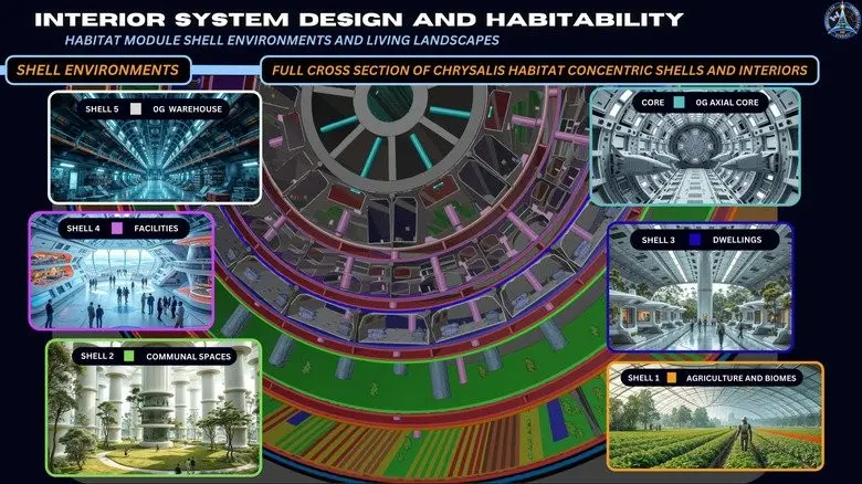 尽管如此,除了“蝶蛹号”,该竞赛还催生了其他许多大胆的构想。亚军作品是“WFP Extreme”,它构想了一艘更紧凑的飞船,以“自我实现”为设计理念,旨在创造一个能让后代自由解决问题、塑造自身生活的环境。第三名作品“Systema Stellare Proximum”的设计灵感来源于水母的简约优雅,其最大胆的设计是利用掏空的小行星作为巨大的天然屏障,抵御深空辐射。